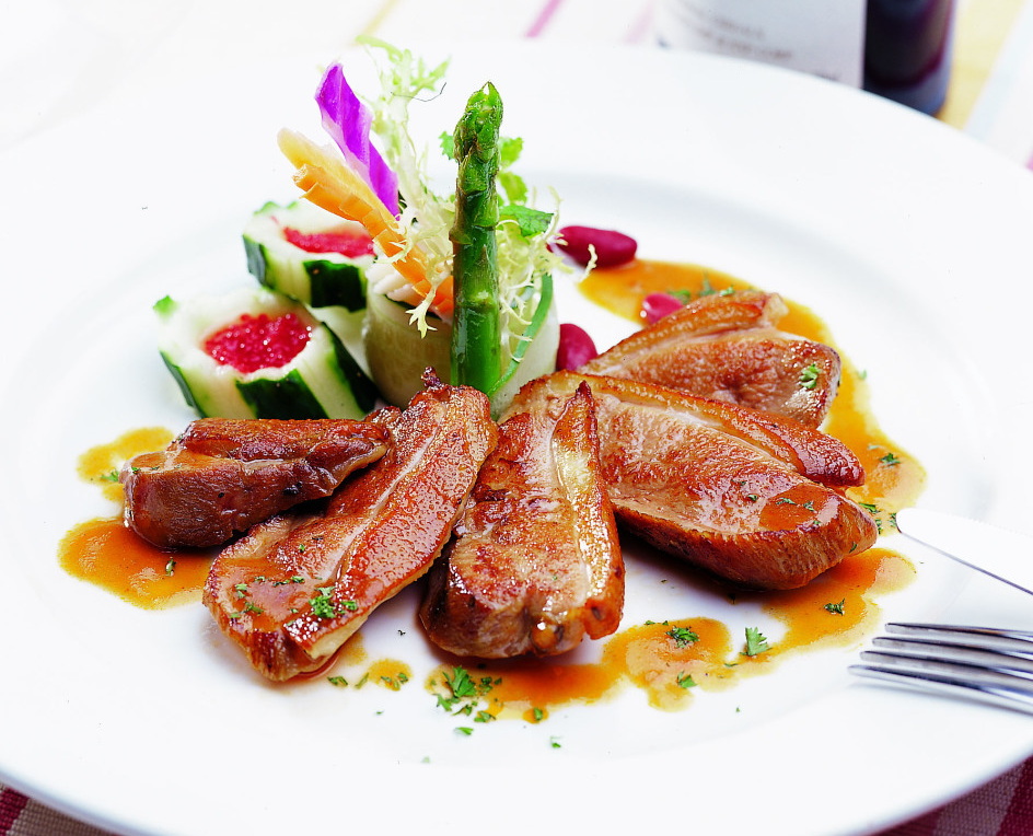 主辅料名称:鸭胸肉、芦笋、花甲、青豆泥、老姜、大葱